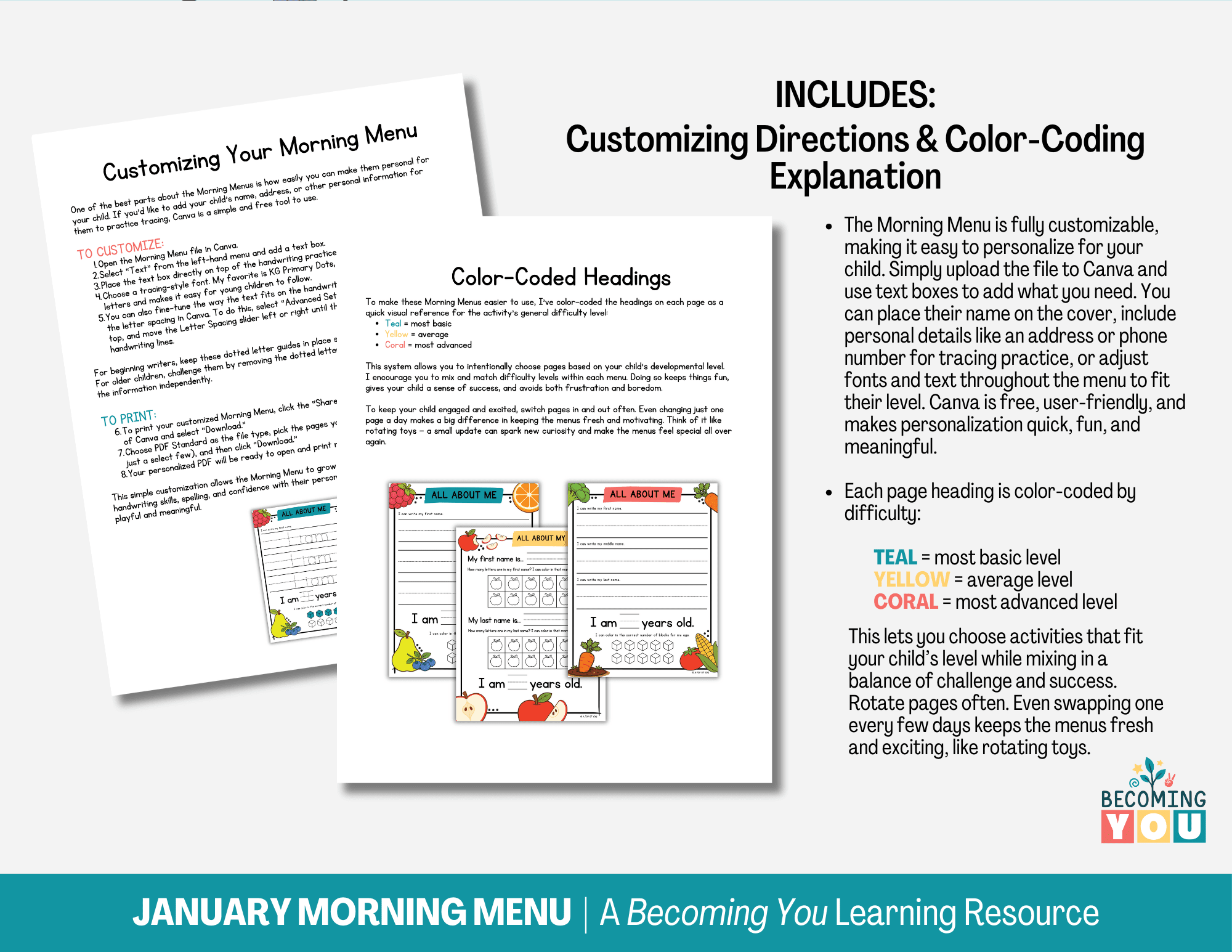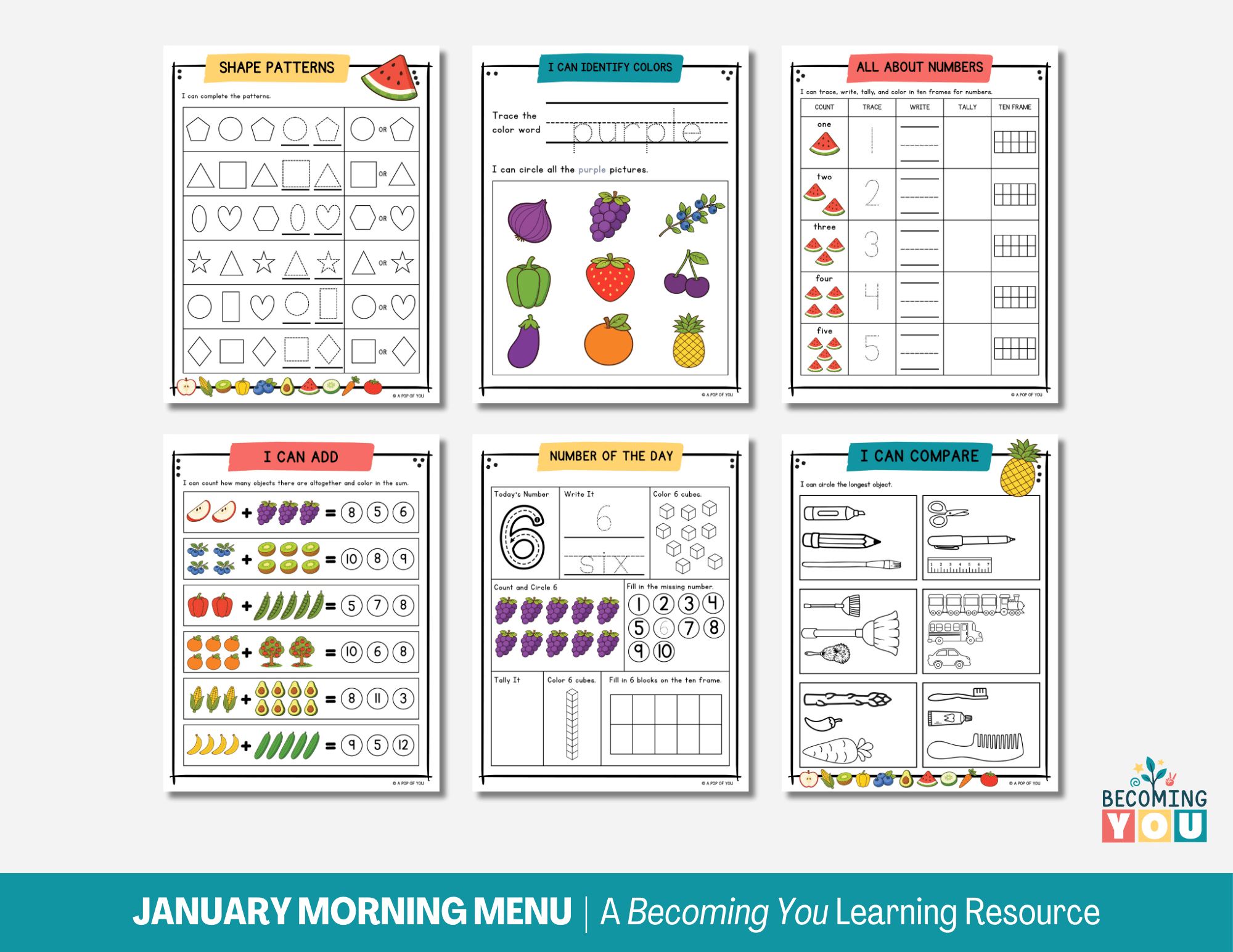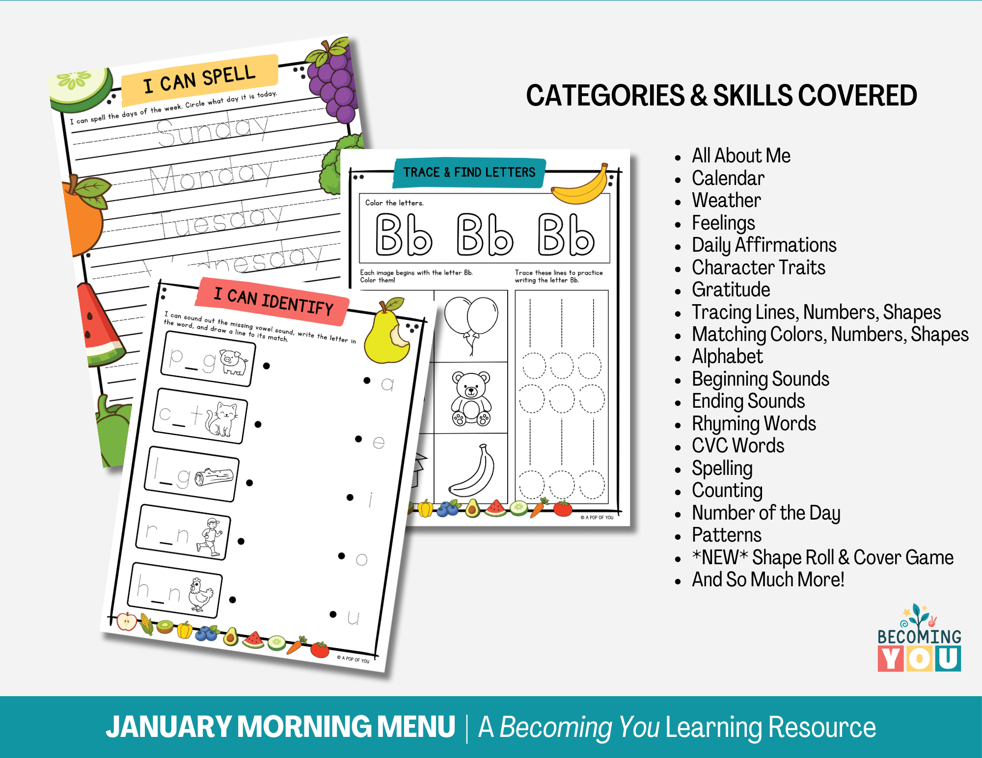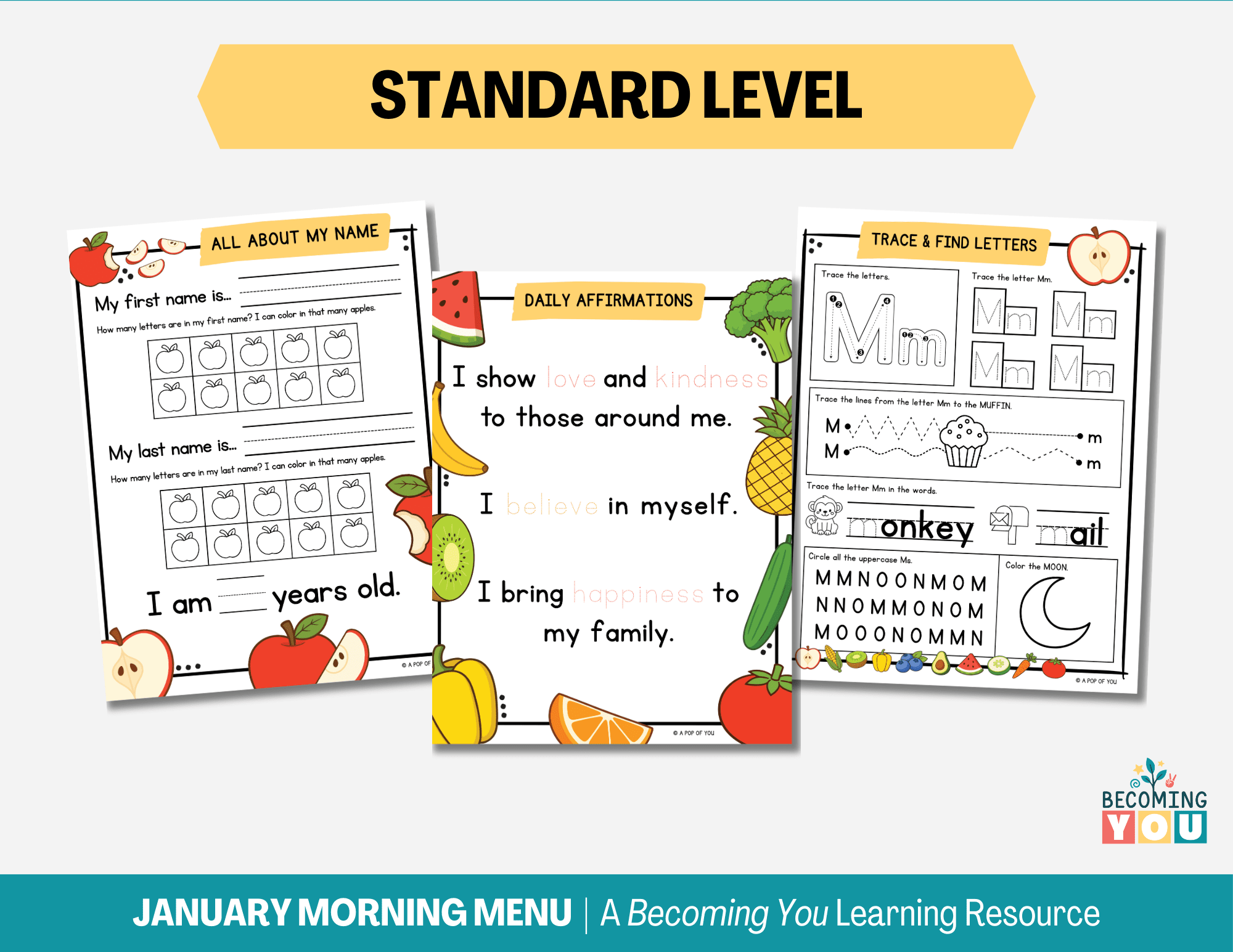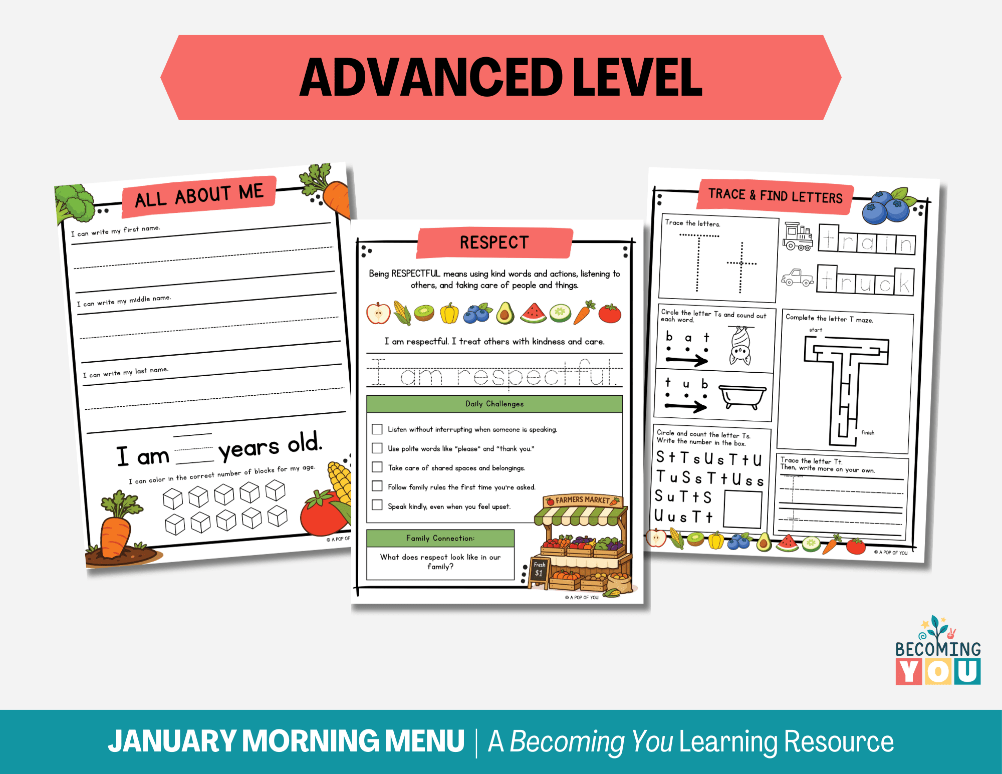 Create calm, consistent mornings with the February Morning Menu—a 194-page printable resource designed for preschool and early elementary learners. Filled with screen-free, fruit and vegetable–themed activities, this menu includes daily affirmations, early literacy and math practice, tracing, calendar work, and simple hands-on learning. It encourages children to engage independently while building focus, confidence, and routine. Designed to support predictable, low-stress mornings, the February Morning Menu offers an easy, structured way to start each day—giving children a clear beginning to their morning and parents the space to move through the day with less overwhelm.
