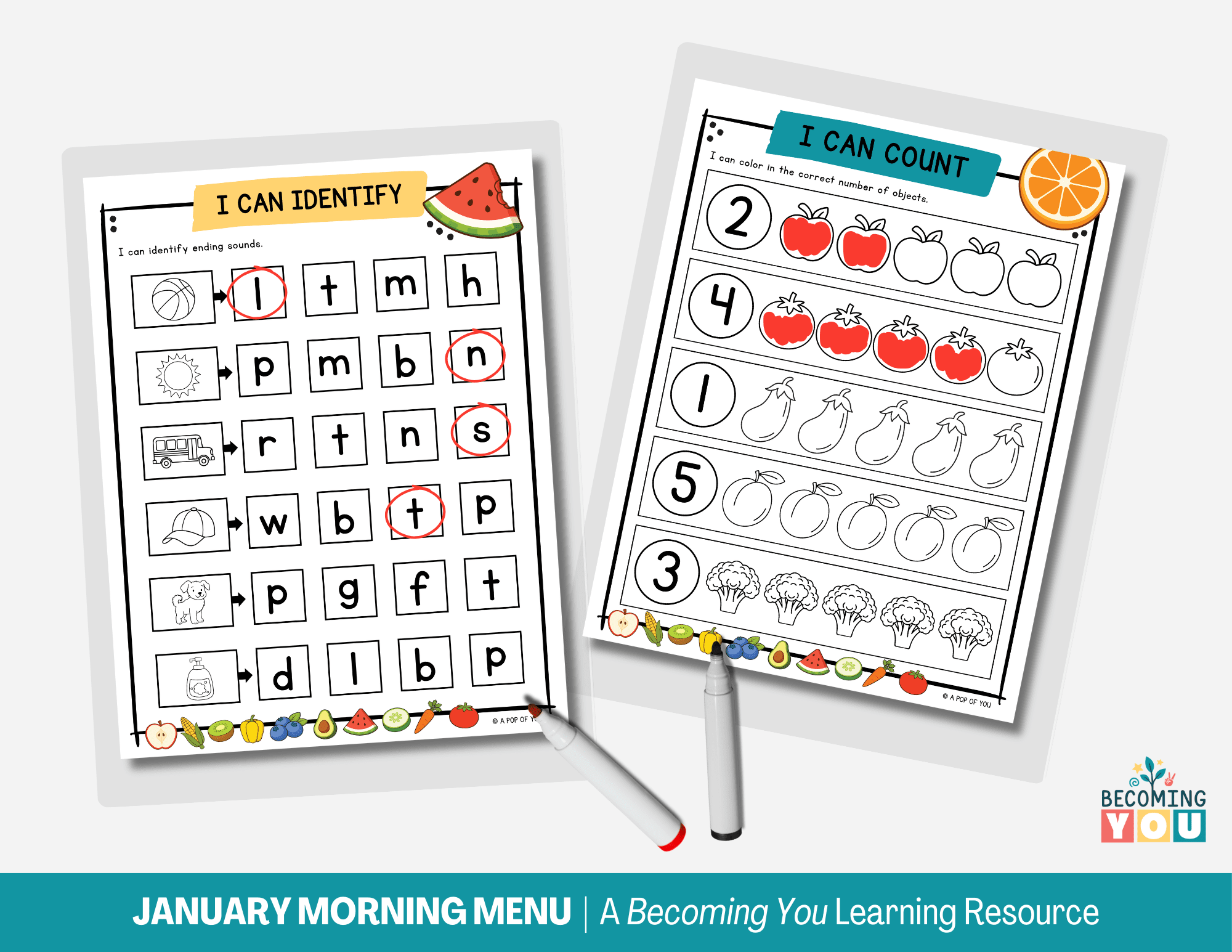 • 180+ Pages of Printables – engaging, reusable February activities with a fun fruits and veggies theme.