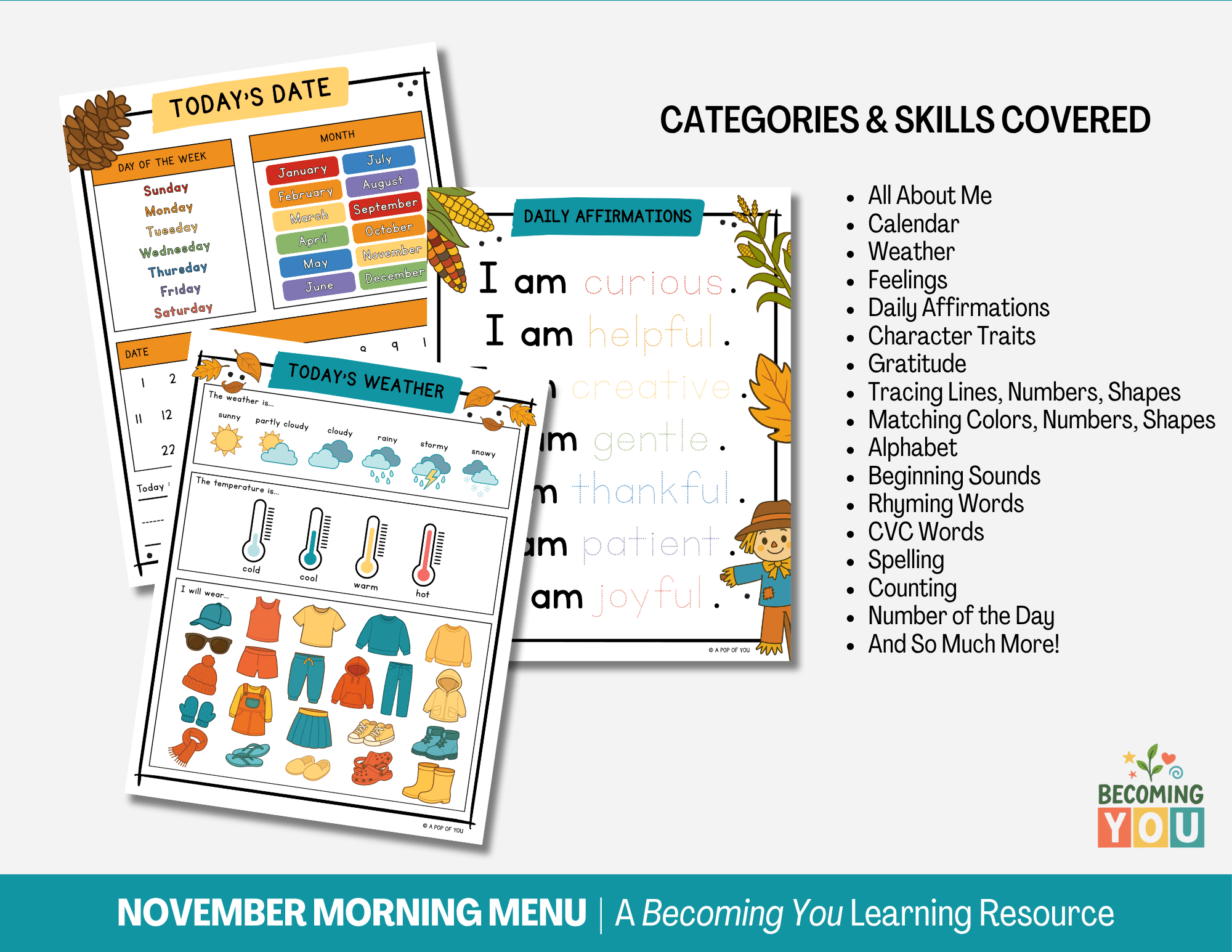 • Seasonal Joy – festive November themes make mornings playful and exciting.